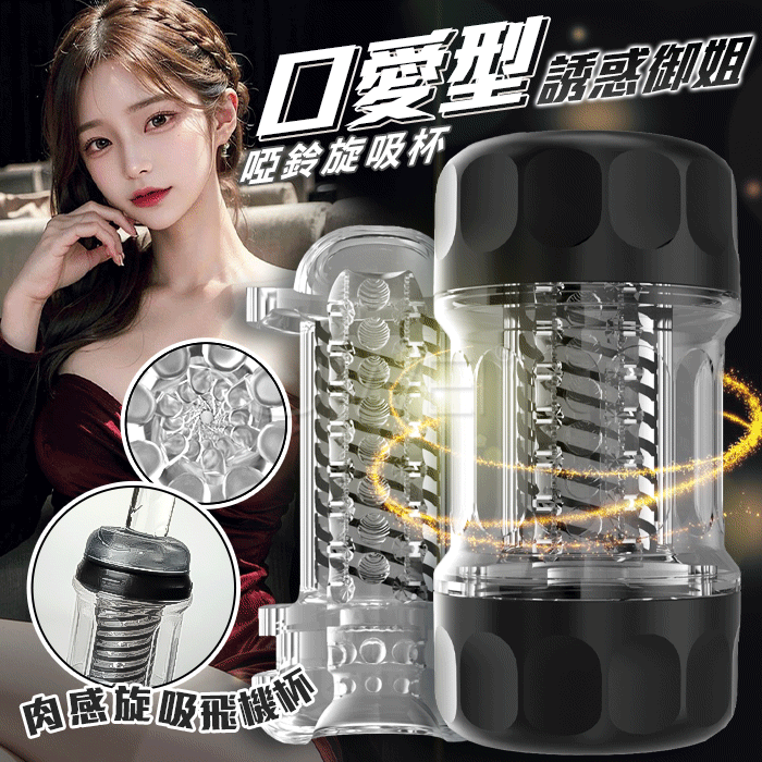 GALAKU.啞鈴旋吸杯 誘惑御姐 肉感旋轉手動負壓吮吸降敏飛機杯-口愛款【黑色】品號:TX-04251023