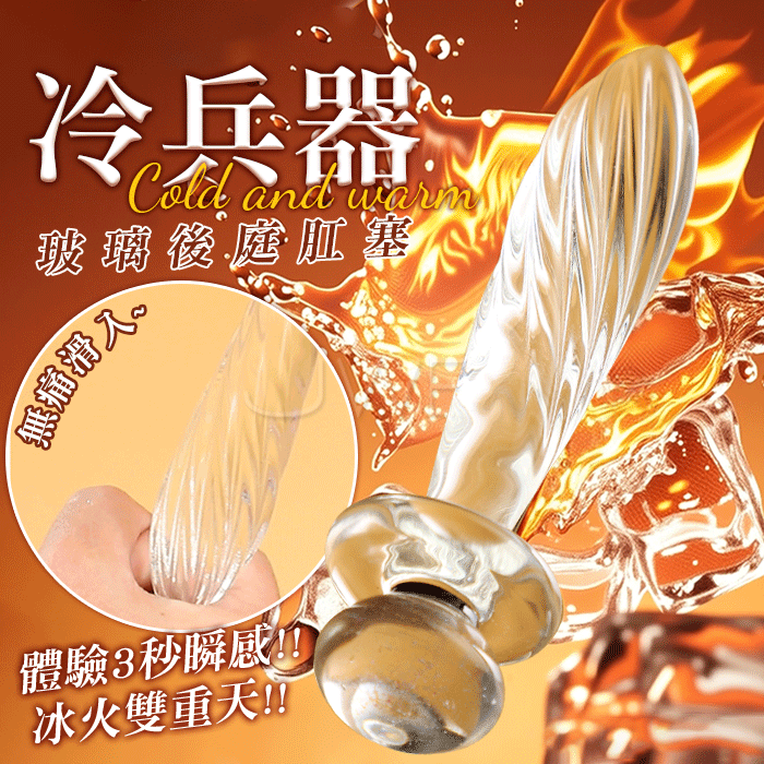 冷兵器.圓潤尖頭環形螺紋冰火雙體驗玻璃後庭肛塞【透明】