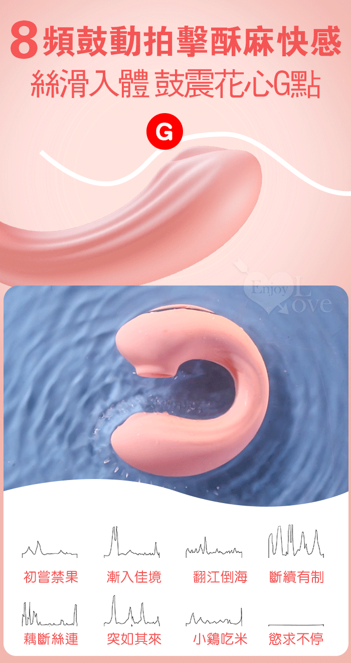 ►您現在的位置:首頁>JIUAI 失控G點棒 鼓動款 ‧ 8X8 拍擊震+吸吮舌撩 雙重體驗穿戴G點按摩器 - 氣氛燈磁吸充電魔盒﹝櫻花粉﹞