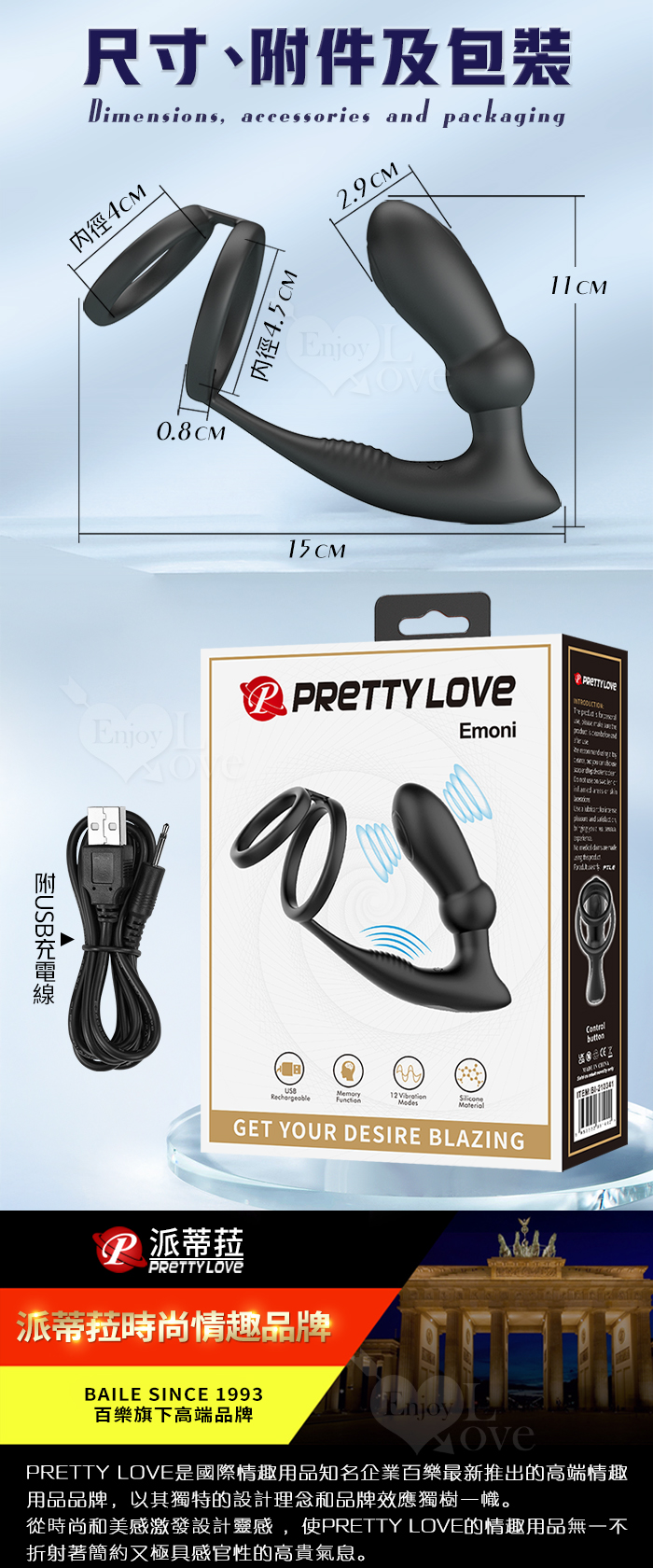 | 派蒂菈 ‧ Emoni 艾莫尼 內外進擊12頻鼓動x12強震前列腺後庭按摩器﹝雙環鎖精+親膚矽膠+智能記憶﹞