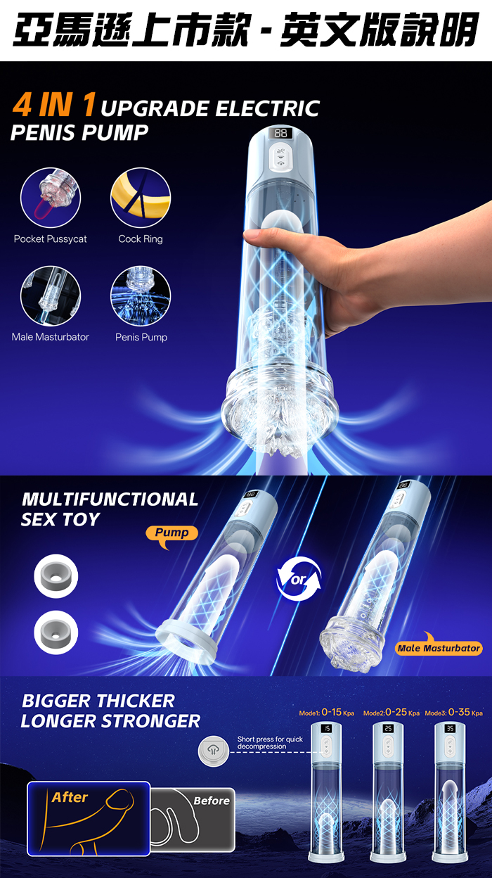 | Hgod 巨吸杯 ‧ 戰士.4IN1真空6頻吸吮陰莖鍛鍊助勃飛機杯-全配備~科學鍛鍊+自慰享受 *亞馬遜上市款*