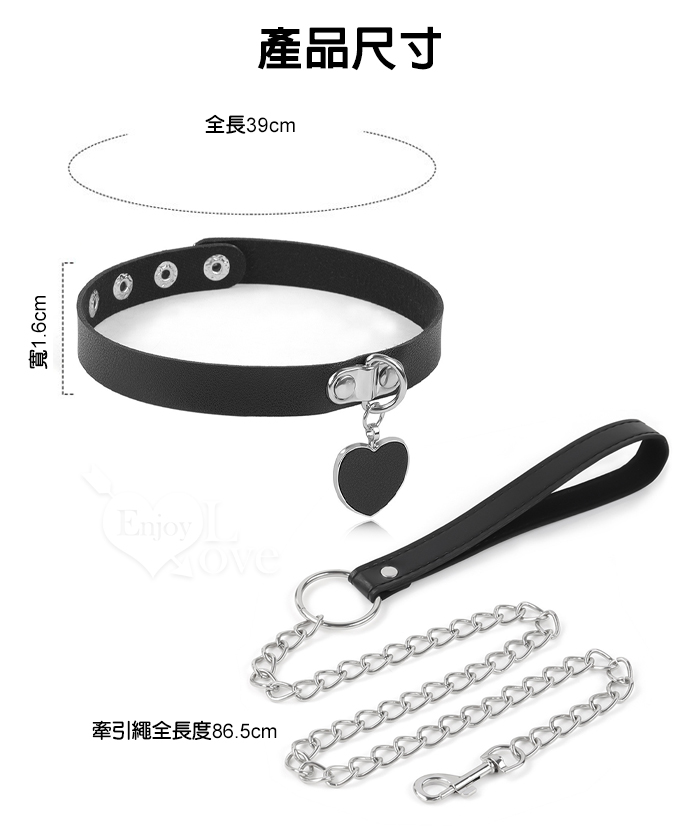 | SM 刑奴扮演 ‧ 愛心掛飾項圈+牽引繩~金屬鐵鏈組合