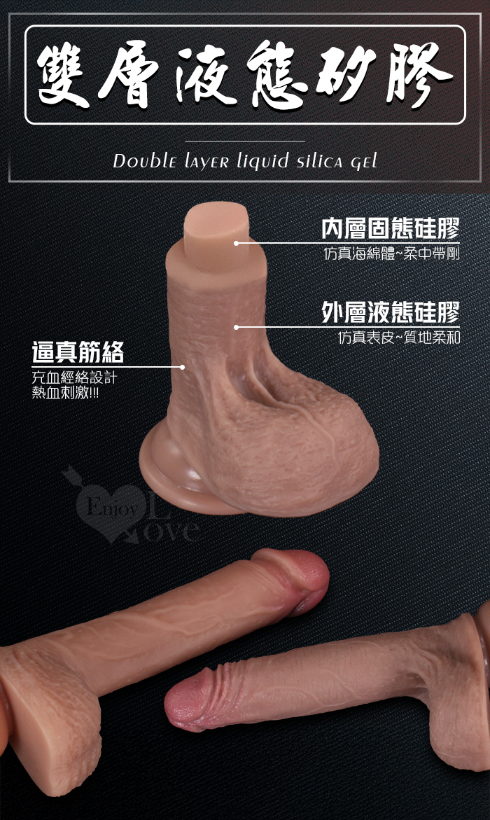 Enjoy Love ‧ 純陽 仿真皺紋凸筋/液態矽膠/軟Q肉彈 加固吸盤老二棒﹝大﹞