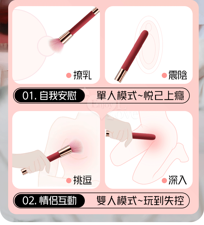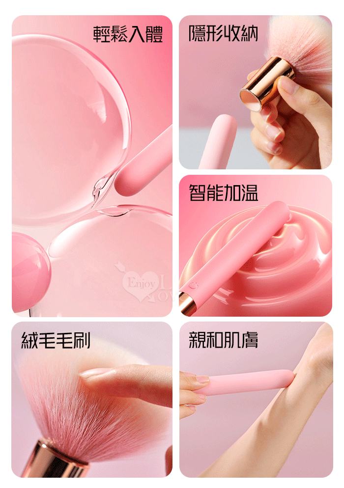 ROSELEX 勞樂斯 ‧ 趣逗棒(含毛刷)10段高頻震智能加溫按摩棒 強震/酥麻/輕巧/隱蔽/挑逗柔軟毛刷-粉