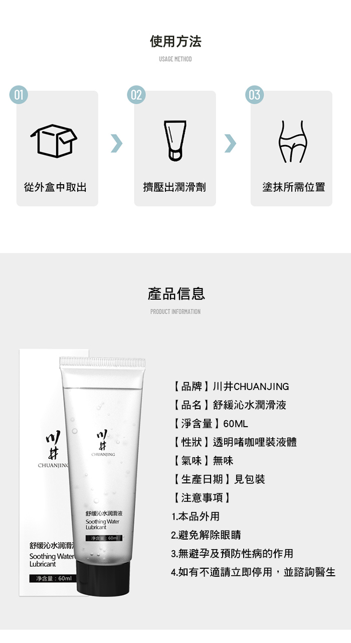 | 川井.舒緩沁水玻尿酸水溶性清爽潤滑液【60ml】