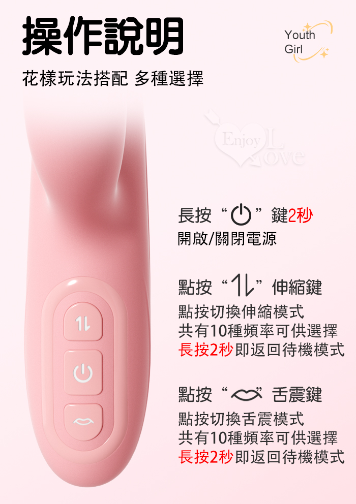 ►您現在的位置:首頁>勞樂斯.愛潮~舌吻伸縮多功能按摩棒﹝10頻伸縮+10頻舌撩震+USB便捷充電﹞