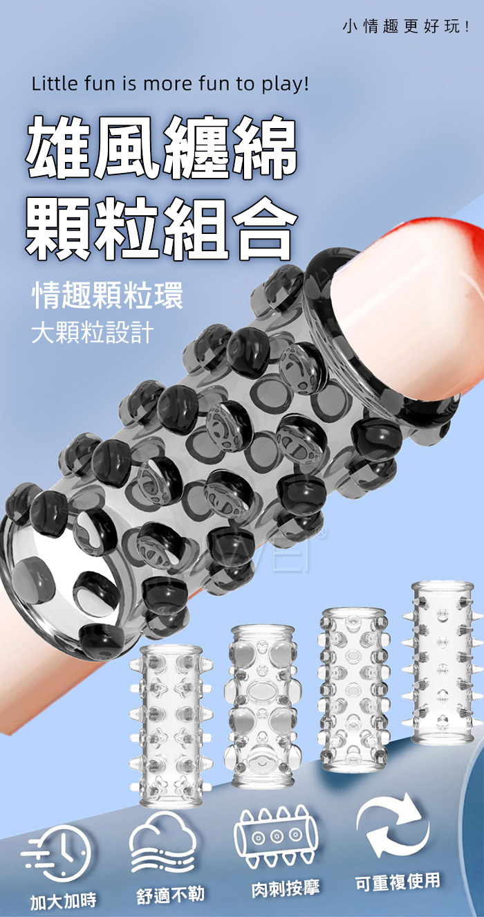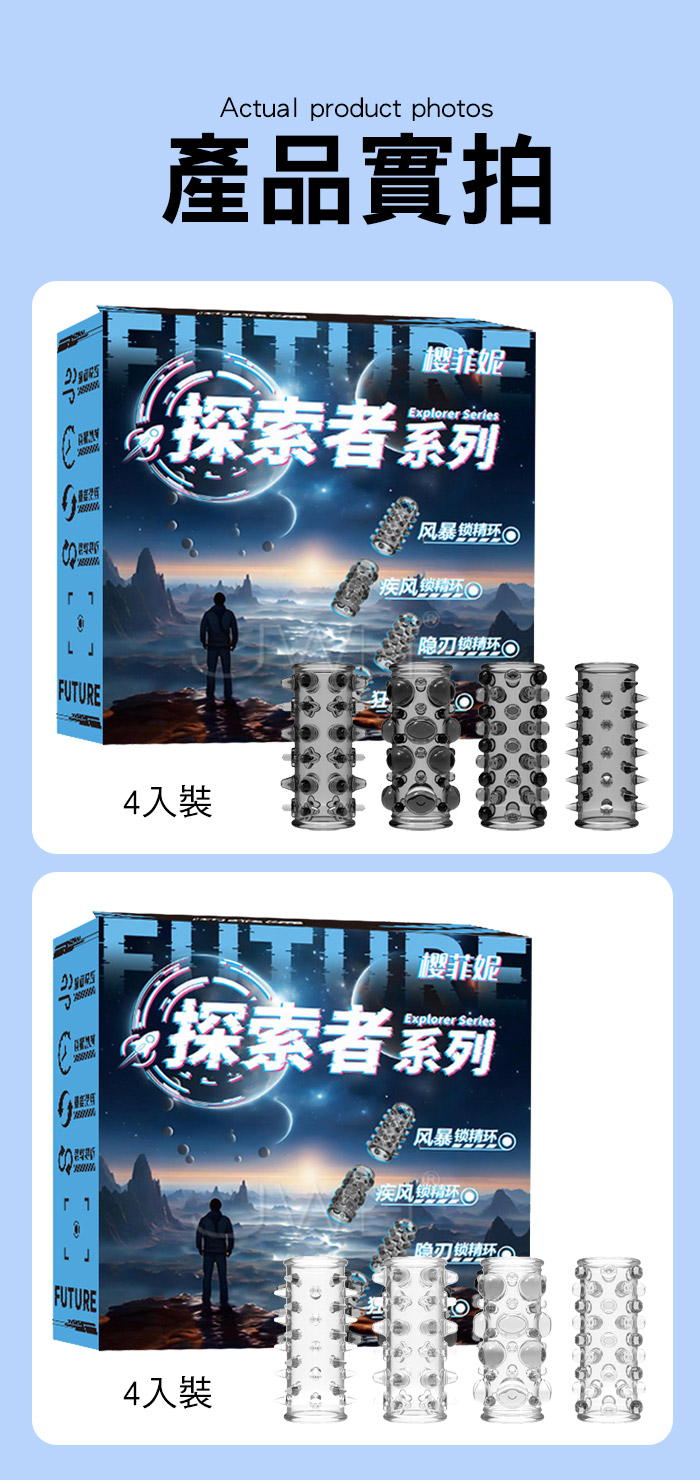| 探索者.大顆粒刺激摩擦快感鎖精延時狼牙套-4入裝【透黑】