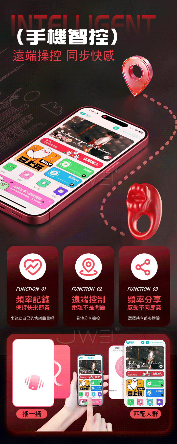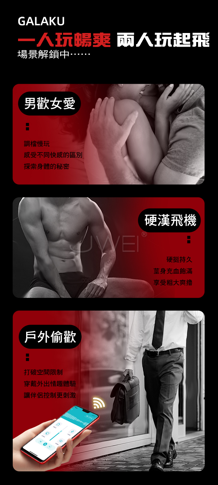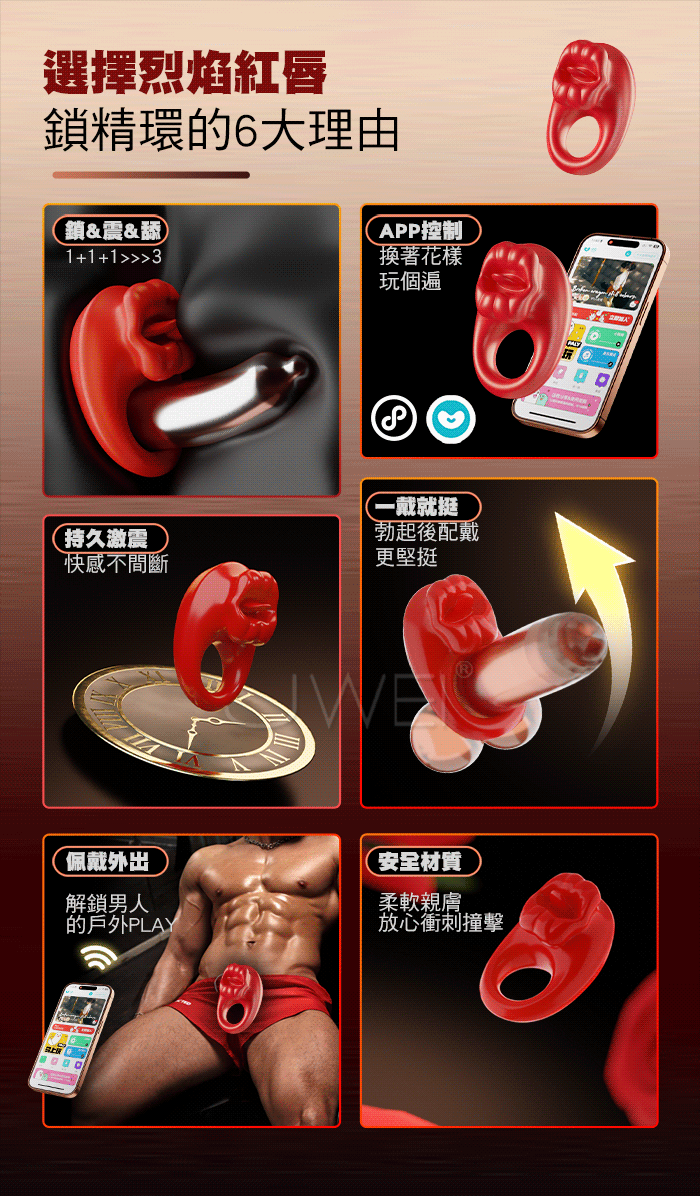 | GALAKU.烈焰紅唇 10頻酥麻強震 邊啪邊震 APP智控震動鎖精環