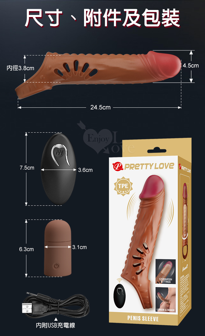 | 派蒂菈 ‧ VANEL 瓦內爾 無線遙控12變頻強勁內震動加長增粗老二束精套﹝擴展男性尺寸/男女共振同享受/USB充電﹞