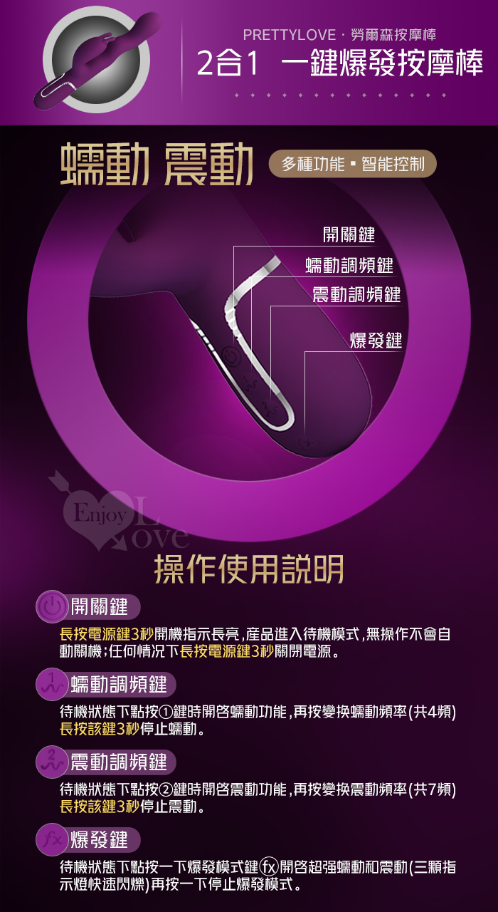 ►您現在的位置:首頁>派蒂菈 ‧ Loursen 勞爾森 4蠕動+7震動 瘋狂蠕動震感內外夾擊入體按摩棒-深紫