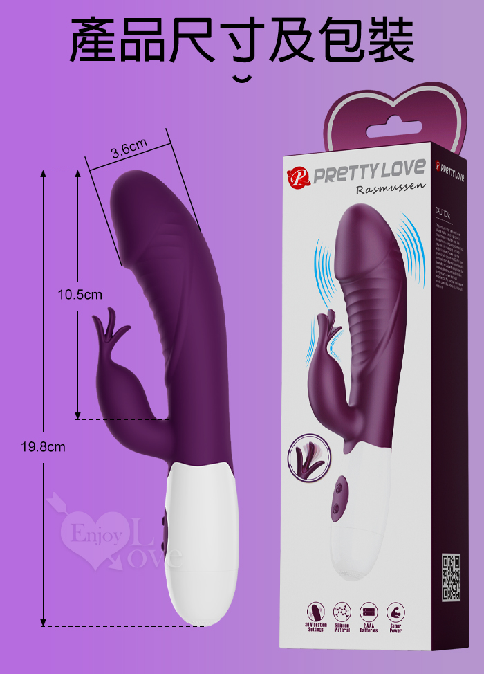| PRETTY LOVE 派蒂菈 ‧ 飛天鵝 雙重強震 內外同享30頻老二頭按摩棒-深紫 Rasmussen