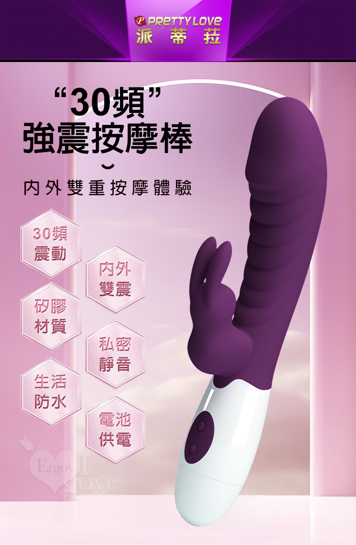 ►您現在的位置:首頁>PRETTY LOVE 派蒂菈 ‧ 頑皮兔 內外雙重30頻雙頭同震按摩棒-深紫