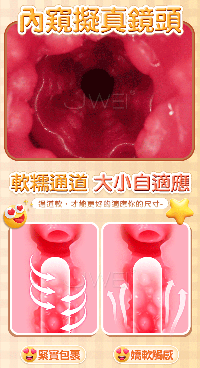 擬真雙通道,子宮頸口造型擬真,膀胱結構感受擠壓尿道流液,不一樣的體驗!
