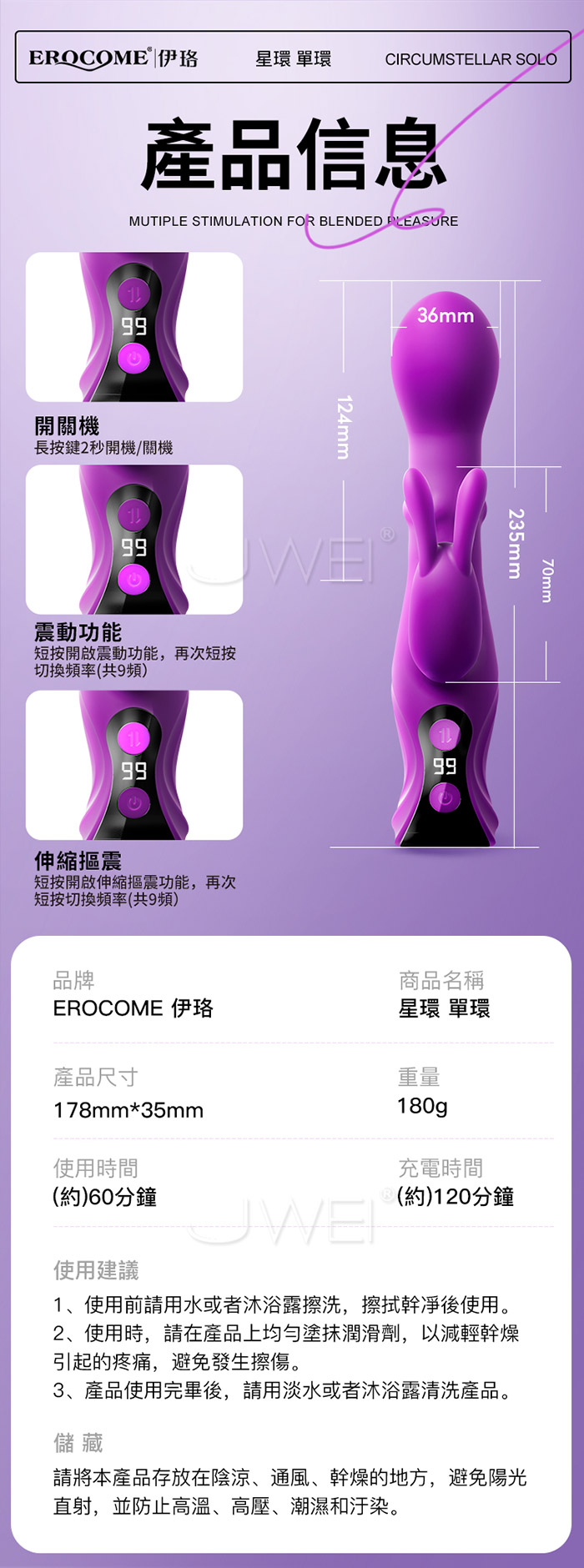 | EROCOME伊珞.CIRCUMSTELLAR Solo 星環座 9x9頻摳震擼珠伸縮舔震 兔耳按摩棒【單環擼珠】