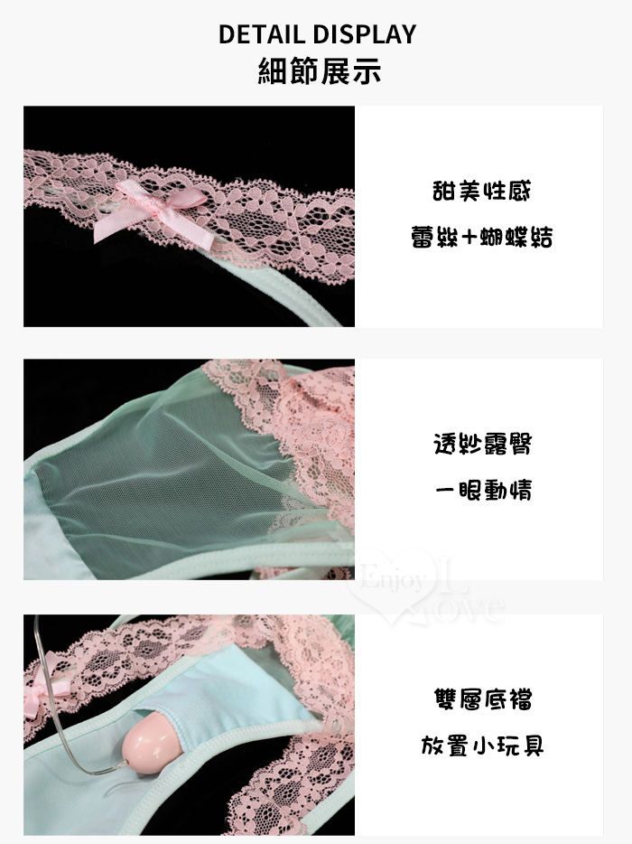 蕾絲交叉寬帶透膚翹臀剪裁|雙層底襠私密口袋跳蛋褲
