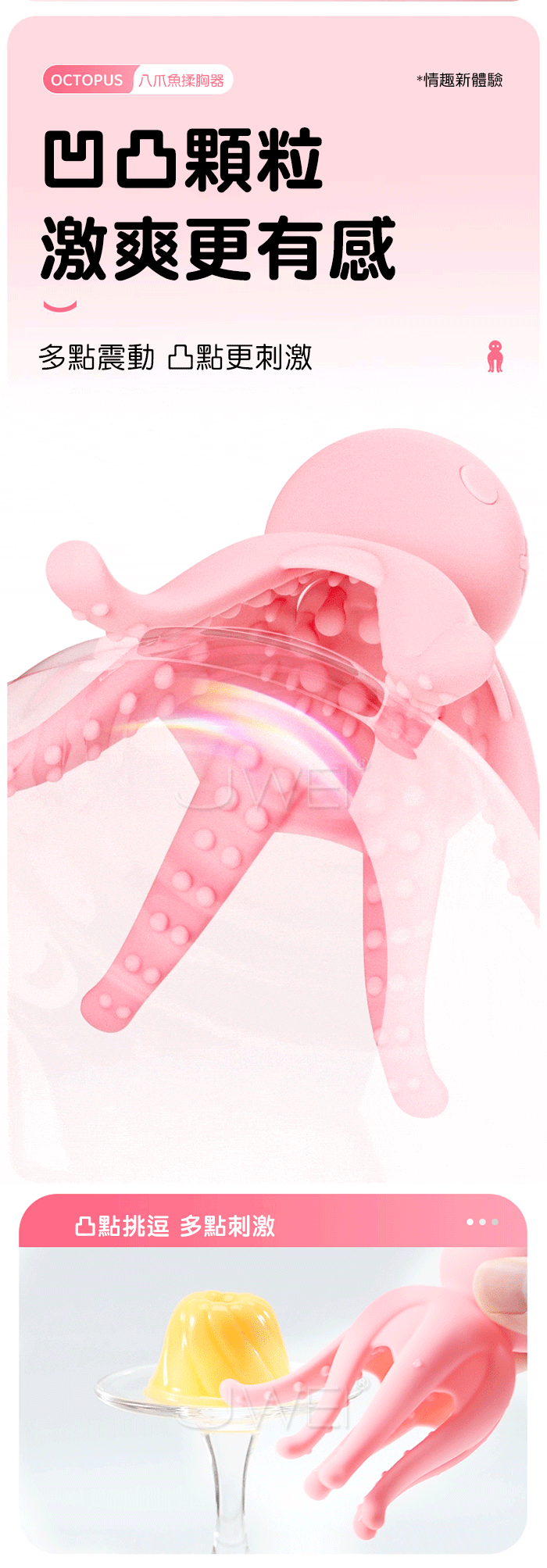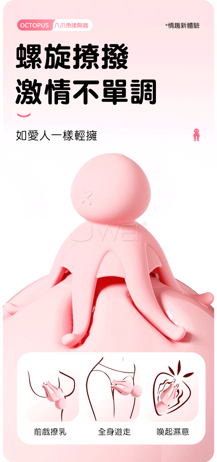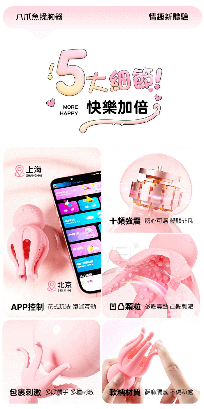 ROSELEX勞樂斯.八爪魚 10頻激震 超帶感凹凸顆粒刺激酥麻APP智控揉胸器