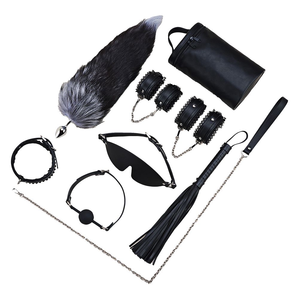 內容物:肛塞尾巴x1、項圈x1、牽引繩x1、口球x1、眼罩x1、皮鞭x1、