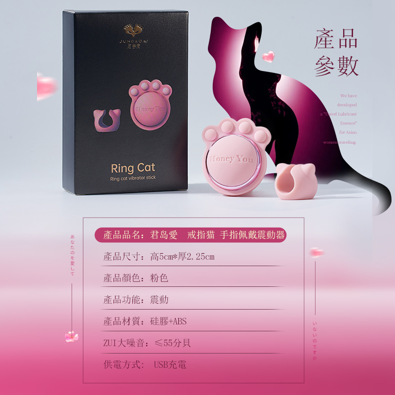 君島愛.戒指貓 手指愛愛配戴震動器 小豆刺激器(粉)