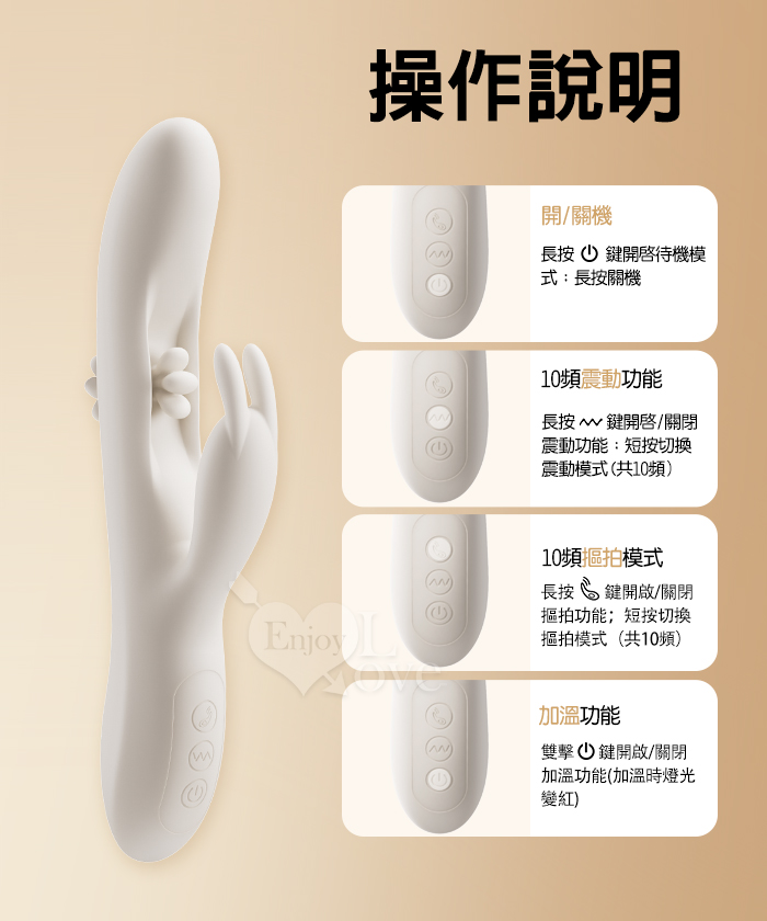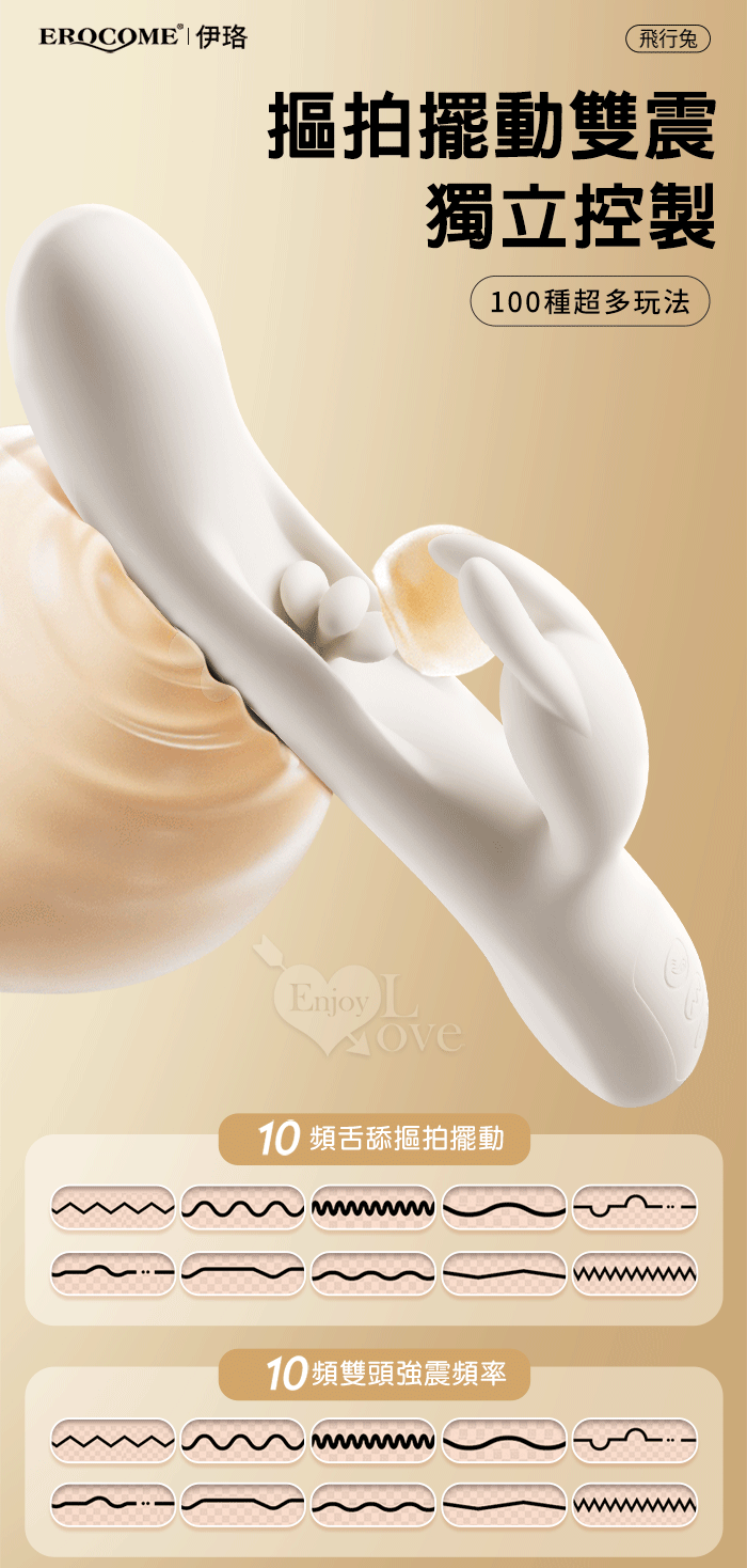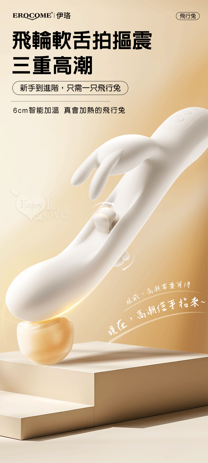 EROCOME伊珞.Flying Bunny 飛行兔 10x10頻飛輪軟舌兔耳震動拍打雙震加溫3合1按摩棒