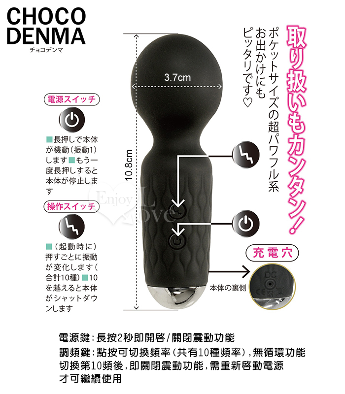 | 日本NPG.CHOCO DENMA 炸裂AV棒 3段震速x7頻震動 迷你按摩棒-黑