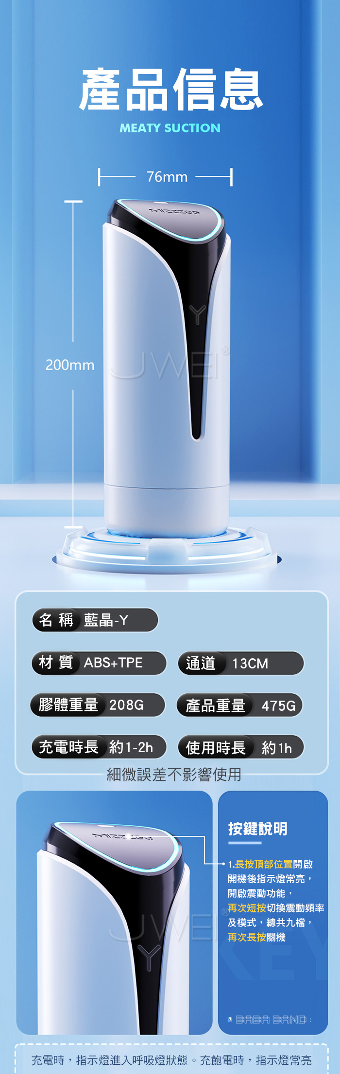 | 藍晶Y.9頻強力酥震 Y型氣孔負壓夾吸肉感APP智控飛機杯