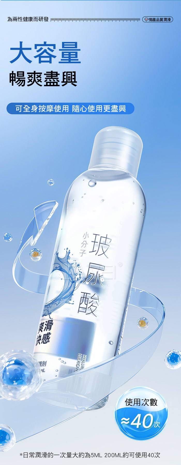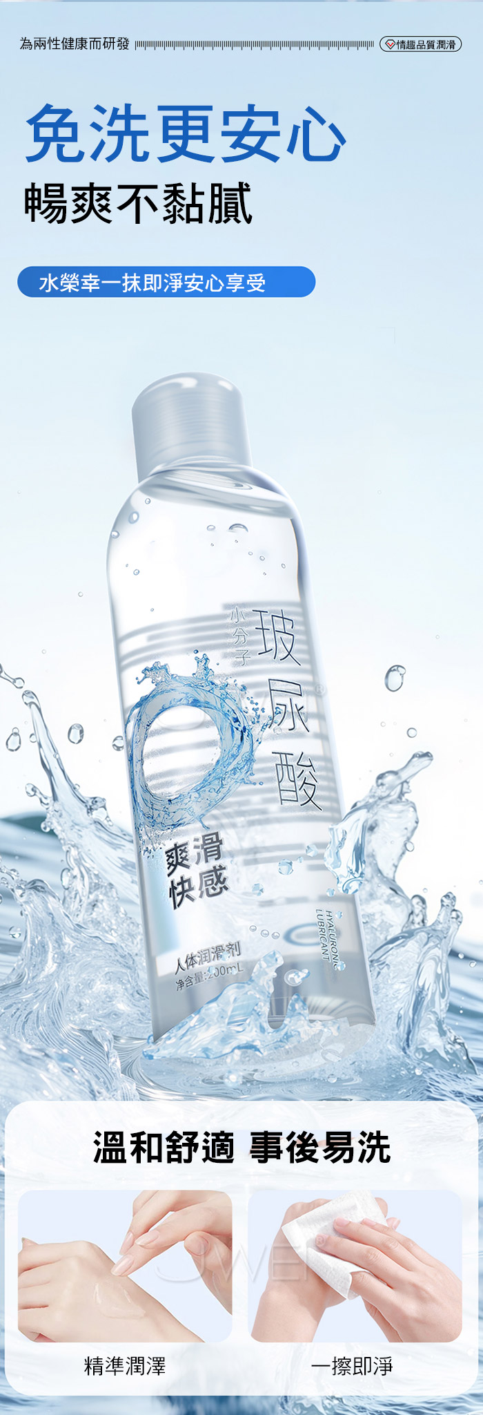 每滴蕴含8000D小分子玻尿酸,呵護私處濕潤平衡,讓補水更直達深處