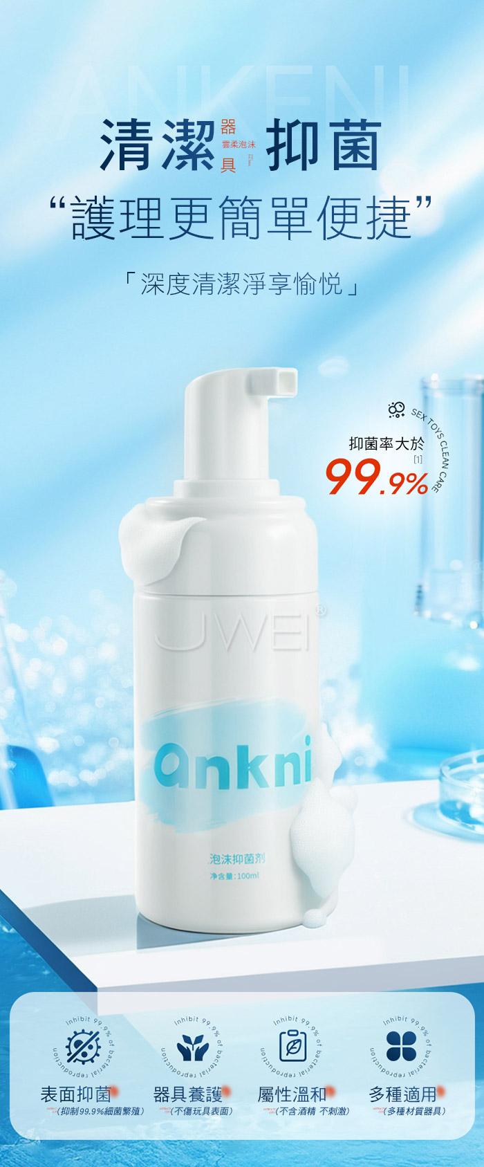 清潔抑菌,護理更簡單便捷,深度清潔淨享愉悦