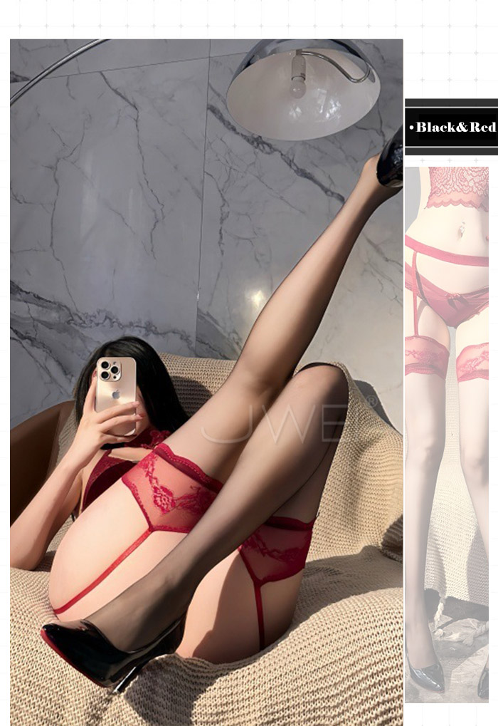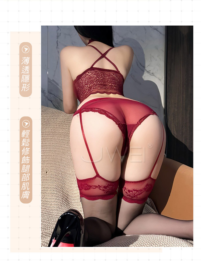 | 魂牽夢縈.御姐風蕾絲吊帶一體絲襪【酒紅】