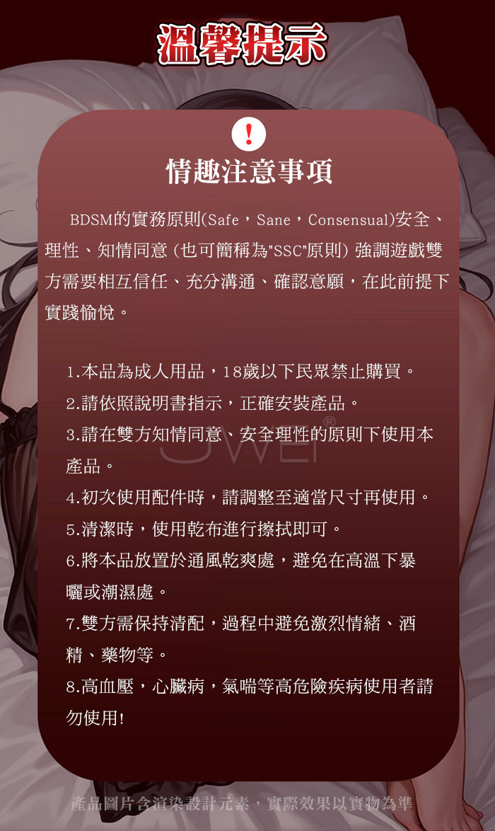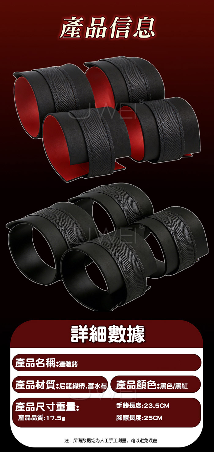 等待綑綁 情趣束縛,情感升溫夜夜笙歌~ 魔鬼沾黏結 即撕即用,簡易束縛 不易掙脫 產品規格 ■尺寸:大小詳如圖片標示 ■材質:尼龍織帶+潛水布 ■SM用品屬於特殊情趣用品,需在雙方清醒自願的情況下使用, 該物品僅作為情趣用品使用,使用時應注意安全!!
