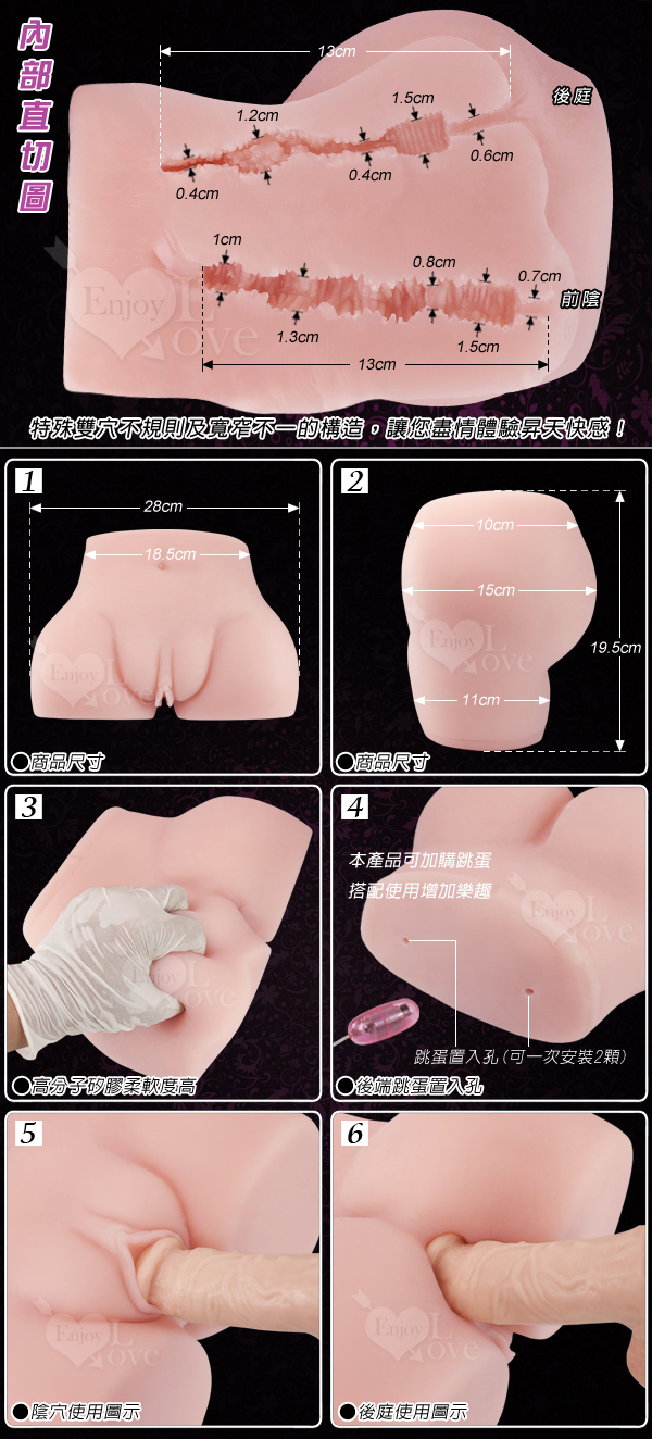 這個大型自慰器是最真實的,重達3.9KG。超柔軟超肉感Q嫩的矽膠材質,用雙手緊緊抓住她的腰部,把老二插入陰道,真是爽翻天,還有男人夢想中的肛門穴也都是比照真人倒模打造,陰交、肛交,她絕對不會對你說不要,只會完全順從你的旨意,讓你把她從頭幹到尾。