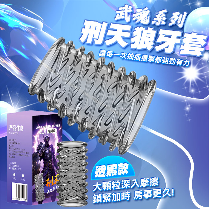 武魂系列 劍魂.鋸齒浪紋加粗水晶男士延時高潮套【透黑】