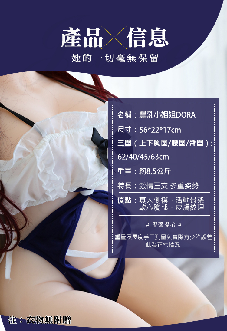 | 豐乳小姐姐DORA 半身仿真人倒模激情三交雙穴自慰器-8.5kg