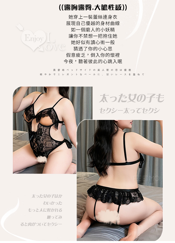【棉花糖女孩】大尺碼狂野連身衣!可調節細肩鏤空美胸交叉裸腹激情免脫開襠裝