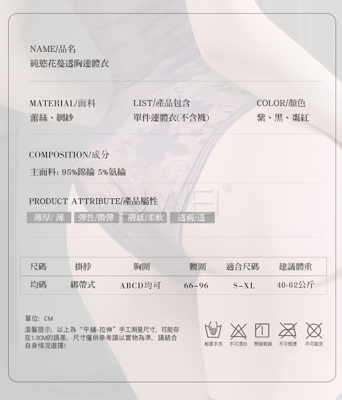 ►您現在的位置:首頁>喚慾花靡.火辣開胸花蔓薄紗透視美背連體衣【棗紅色】