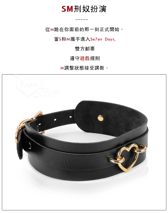 SM 刑奴扮演 ‧ 玫瑰金愛心寬版項圈+牽引繩~金屬鐵鏈組合