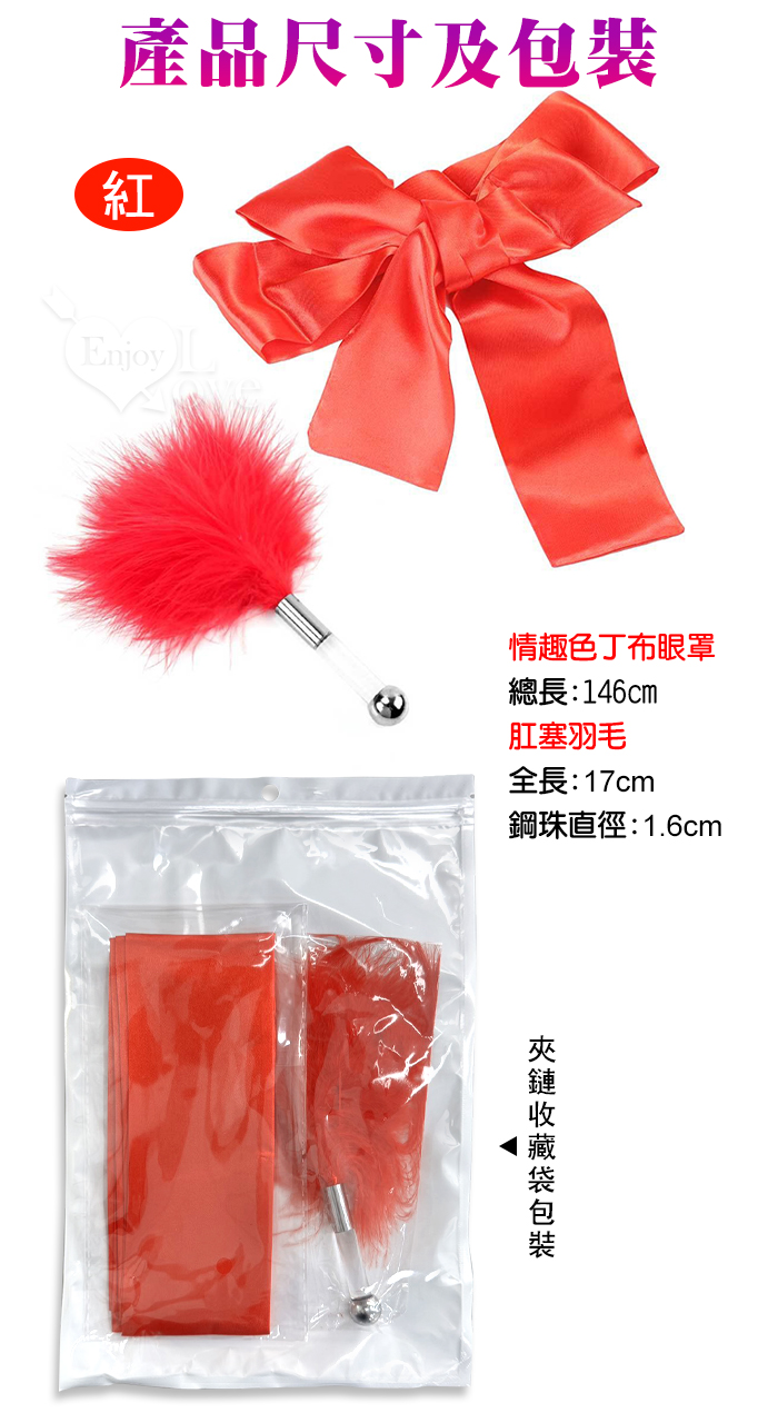色丁布蒙眼罩+肛塞羽毛套装﹝挑逗+裝扮刺激﹞艷紅色