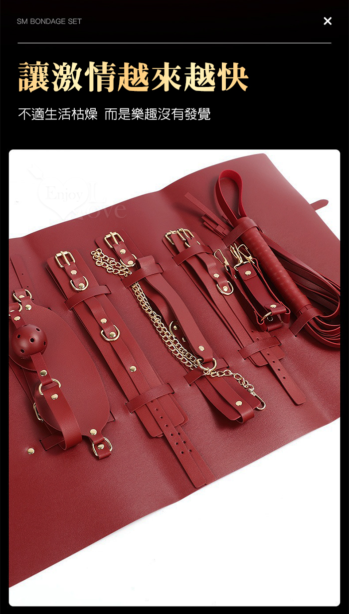 SM情趣道具 ‧ 調教捆綁束縛皮革七件套~時尚包包/方便收納/成人性愛玩具﹝酒紅色﹞