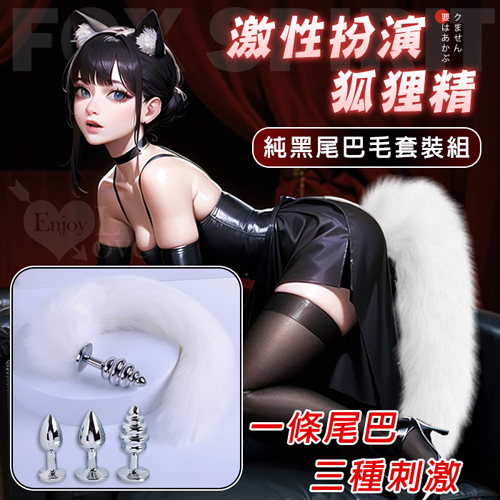 | 激性扮演狐狸精 ‧ 3款不銹鋼後庭肛塞+純粉尾巴毛套裝組﹝可組裝拆卸﹞