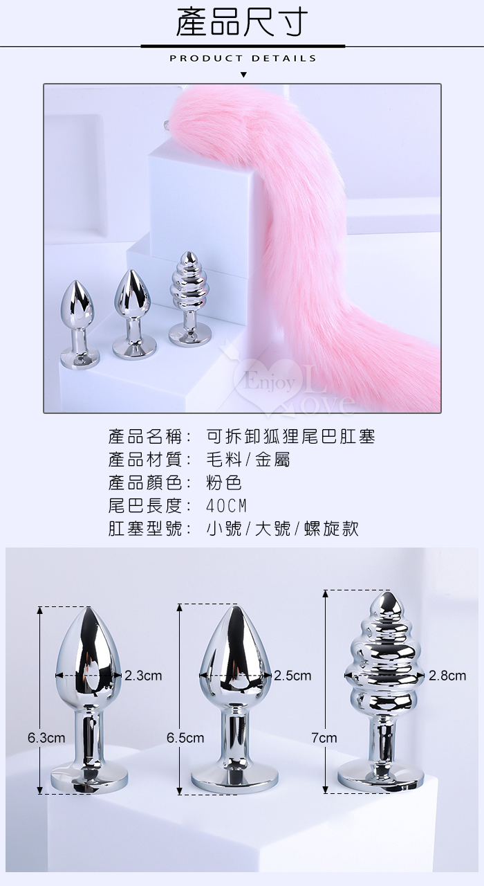 | 激性扮演狐狸精 ‧ 3款不銹鋼後庭肛塞+純粉尾巴毛套裝組﹝可組裝拆卸﹞