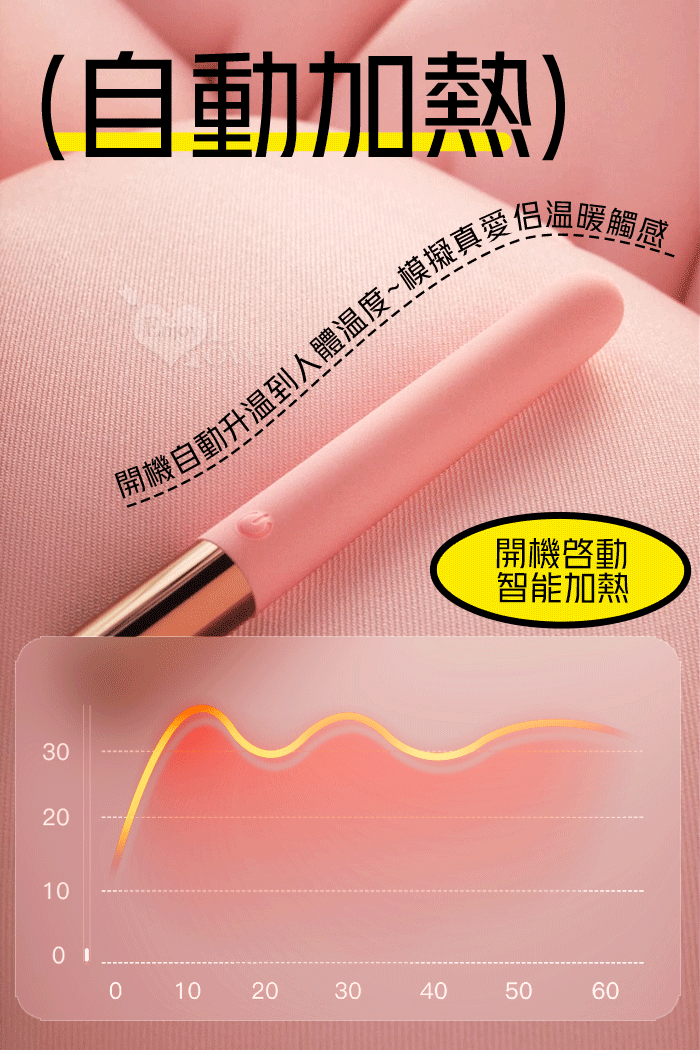 ROSELEX 勞樂斯 ‧ 趣逗棒 10段高頻震智能加溫按摩棒 強震/酥麻/輕巧/隱蔽-粉