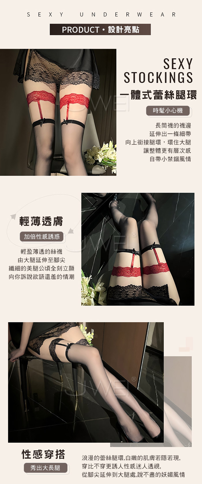 慾情誘惑.法式蕾絲花邊 蝴蝶結腿環長筒過膝絲襪【黑絲愛心】