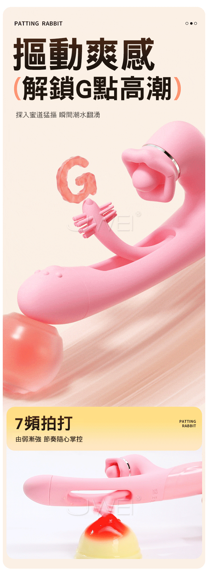 | 謎姬 MizzZee.拍拍兔.7頻G點摳潮+7頻C點柔珠口愛 強震摳G拍打棒