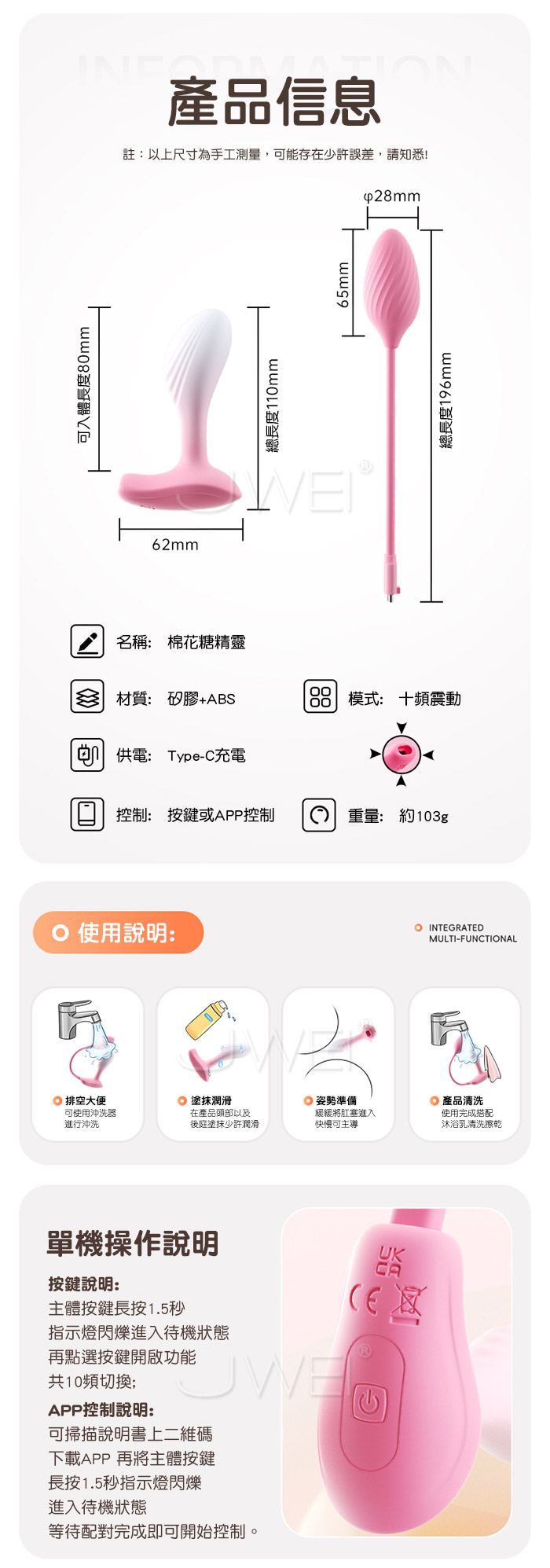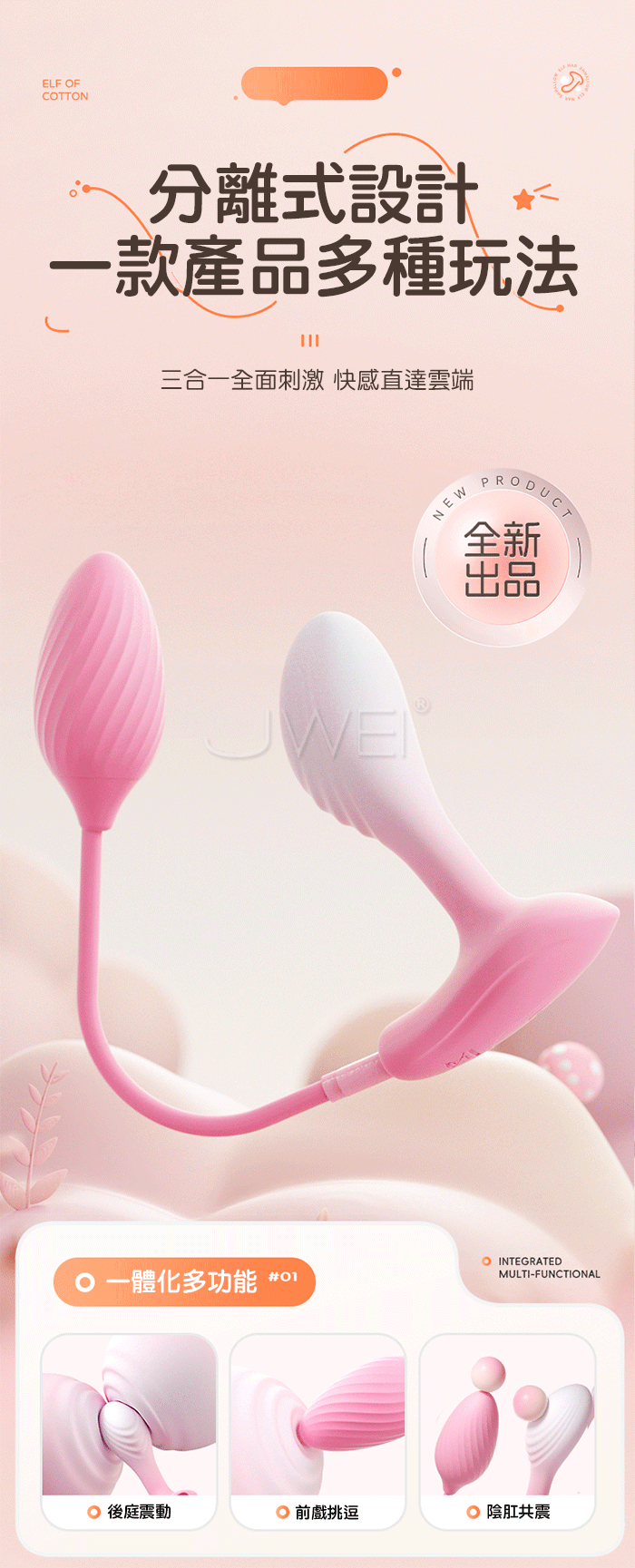 | 謎姬 MizzZee.棉花糖精靈.10段雙驅變頻爆震 APP智能遠控 分離式跳蛋後庭震動肛塞