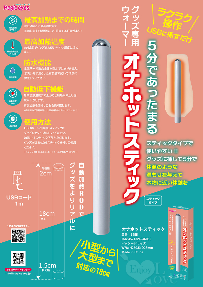 日本Magic eyes.オナホットスティックOna 42度全自動溫控USB加熱棒﹝自慰器飛機杯專用﹞ 加溫棒