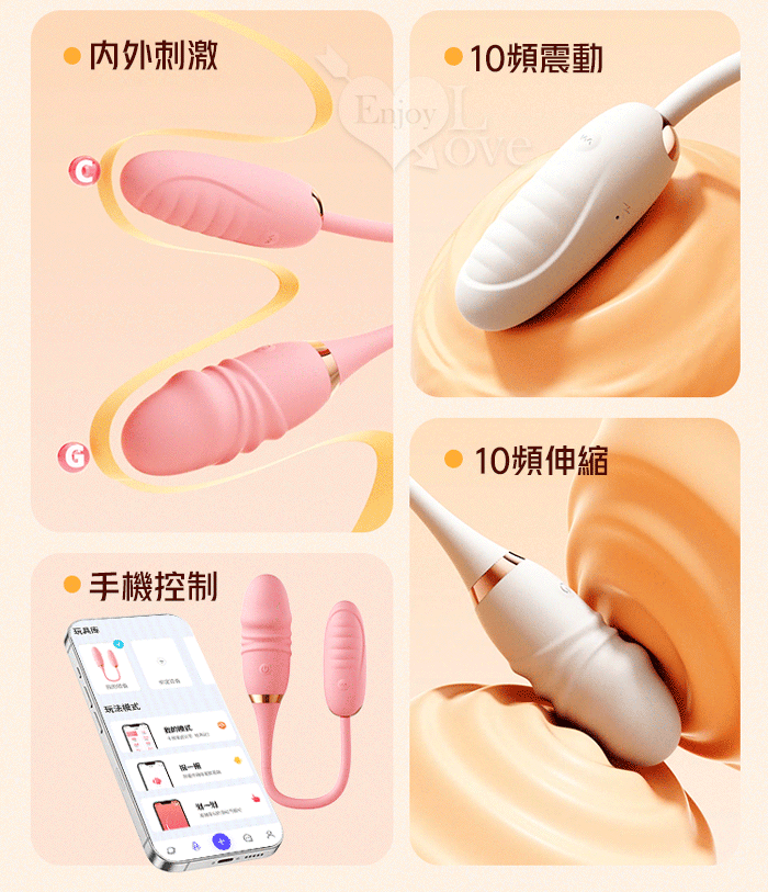 勞樂斯 ‧ 双子伸縮爆震跳蛋棒組合~邊震邊頂/10調頻/入體內外共爽/手機APP﹝具兩種操控模式﹞白