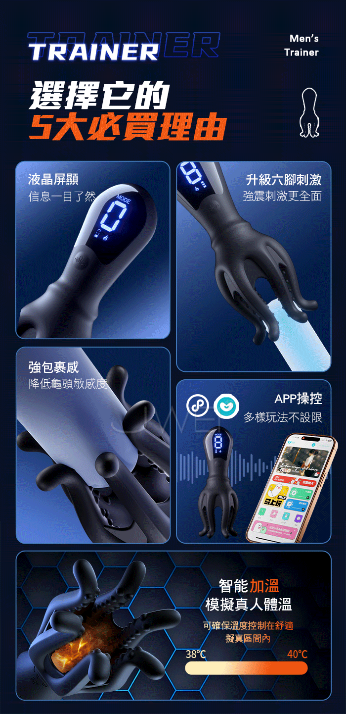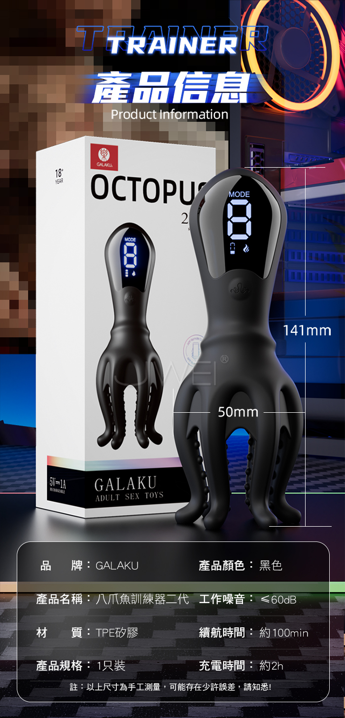 ►您現在的位置:首頁>GALAKU.八爪鱼二代 9頻強震 升級六腳顆粒刺激 APP智控強莖訓練器