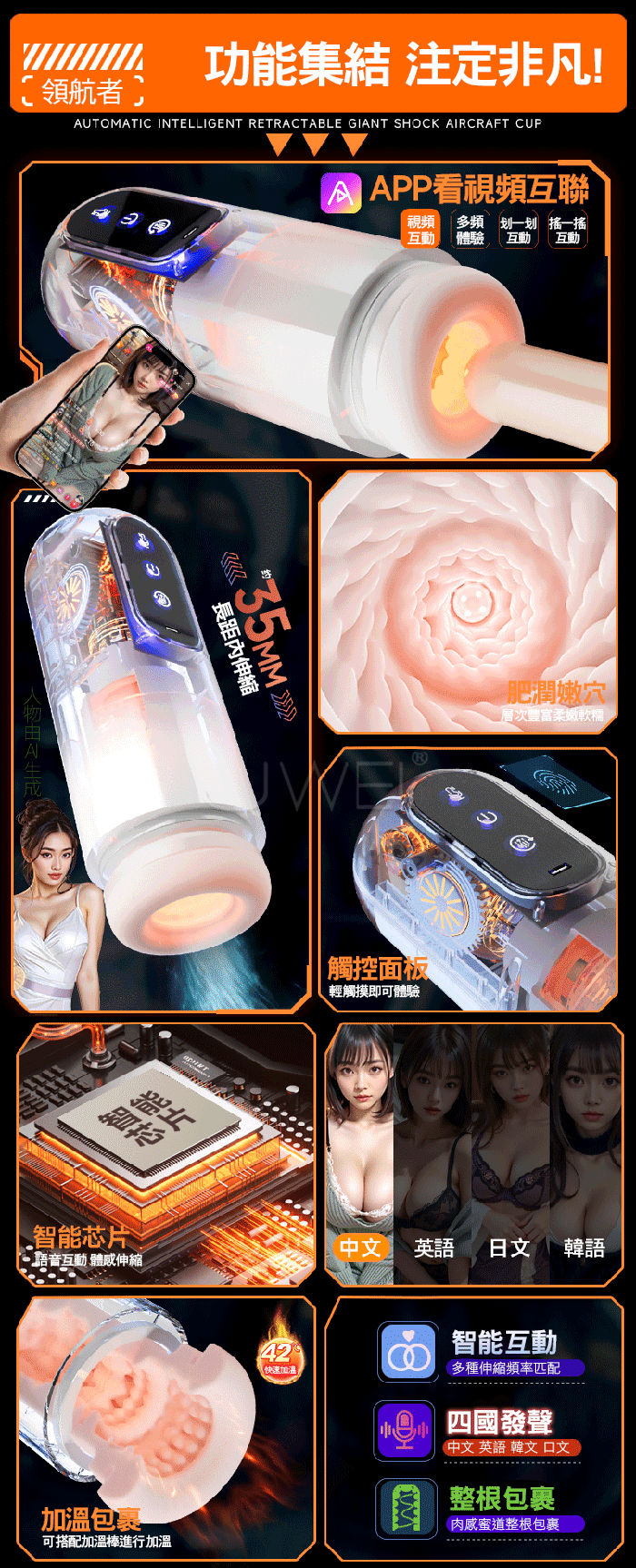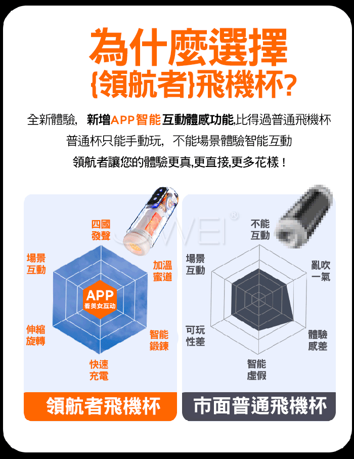 | 領航者. 6頻長距伸縮旋轉 四國女優叫床 APP智能互動電動飛機杯