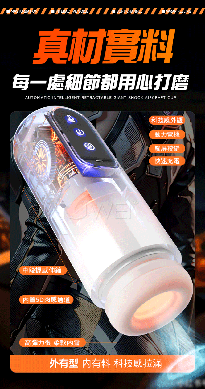 中段握感伸縮,内置5D肉感通道柔軟内膽,外有型 內有料 科技感拉滿