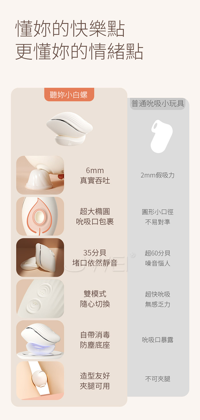 ►您現在的位置:首頁>EROCOME伊珞.Conch 小白螺 8頻吸震雙模式慢玩 紫外線滅菌 靜音深吻吮吸跳蛋