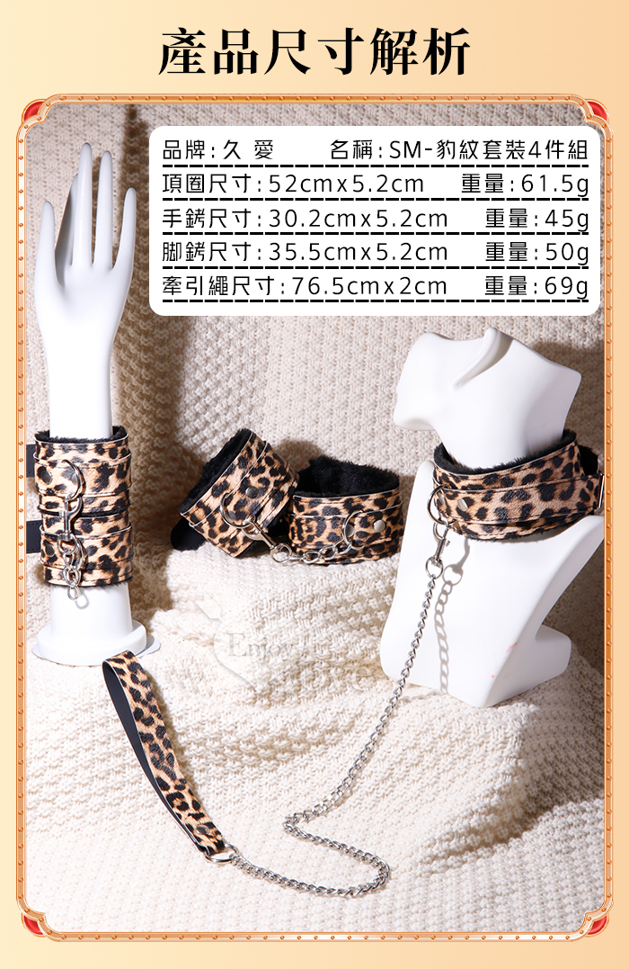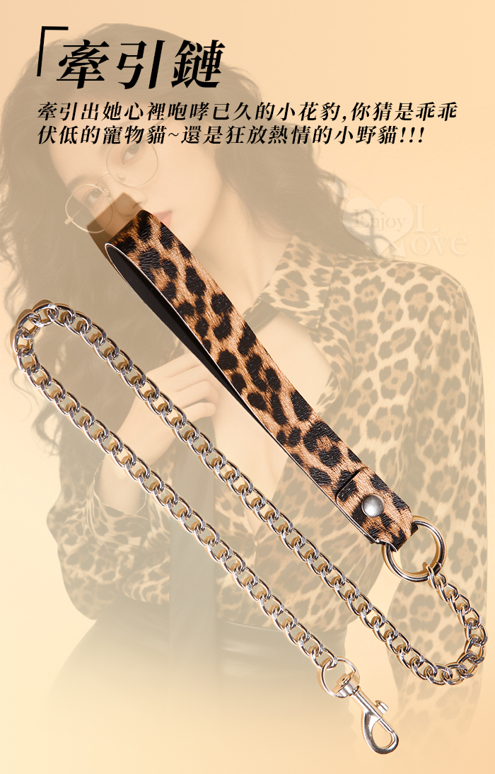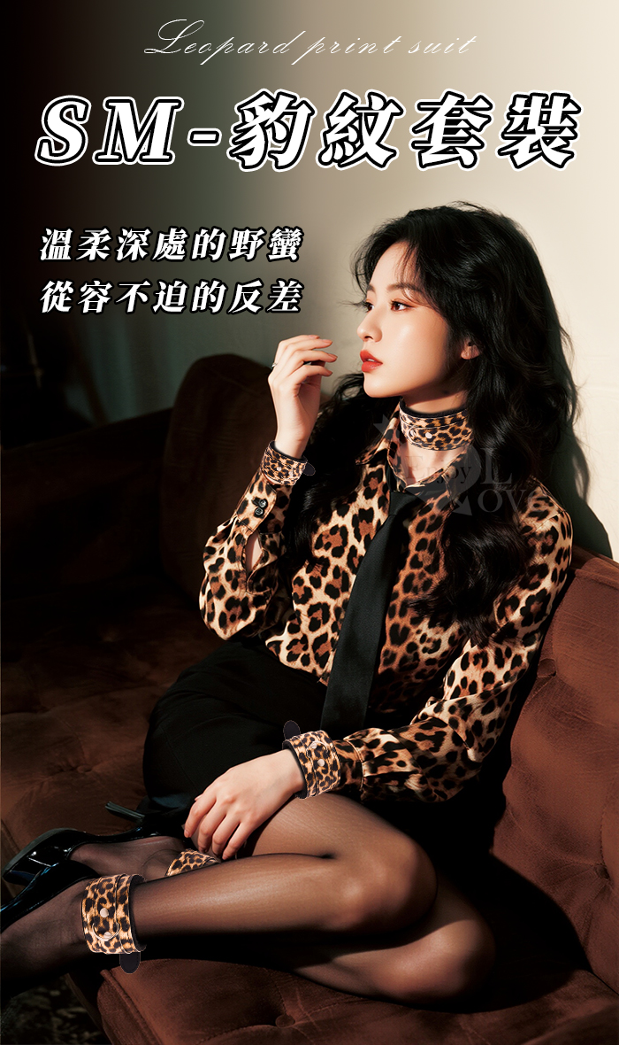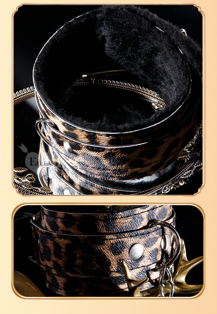 | SM-豹紋套裝4件組 ‧ 男女情趣束縛-溫柔展現野性美﹝外置皮革~內置絨毛﹞